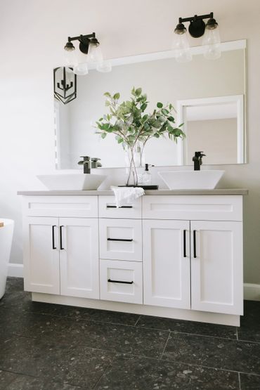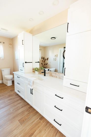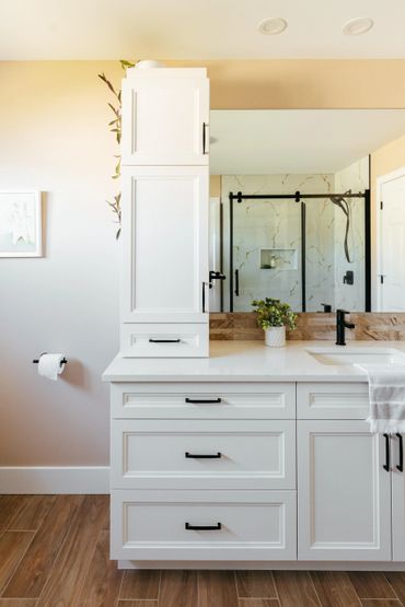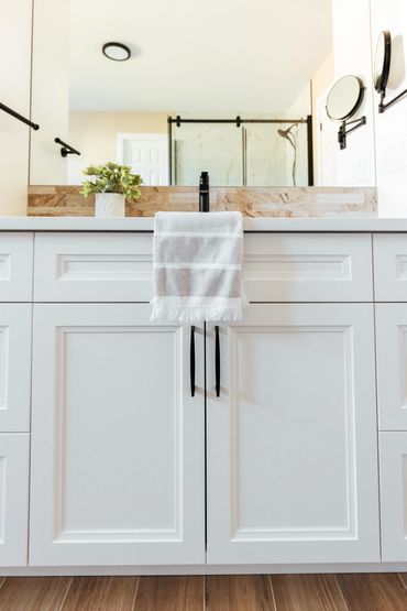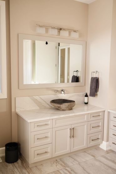 Find inspiration from past featured projects we've done showcasing white and cream vanities. Contact us below to schedule a consultation and discover the possibilities for your custom bathroom cabinets and vanities!